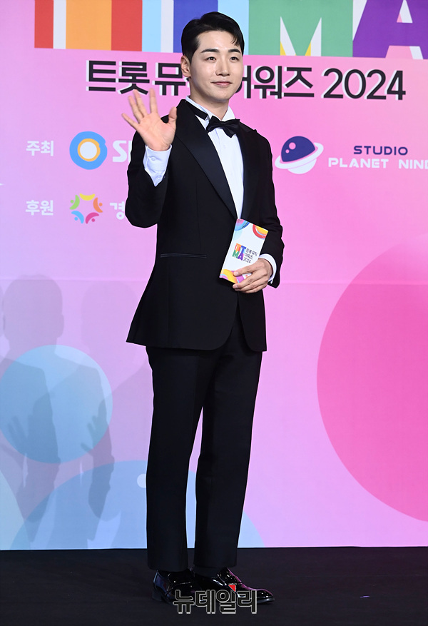 가수 박군이 12일 오후 서울 마포구 SBS 프리즘타워에서 열린 '트롯뮤직어워즈 2024' 레드카펫에서 포즈를 취하고 있다.