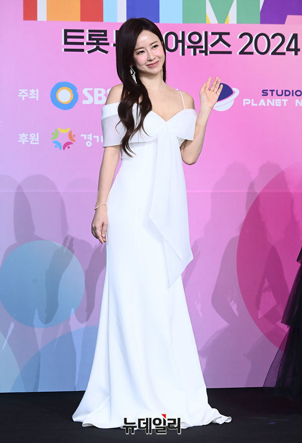 가수 은가은이 12일 오후 서울 마포구 SBS 프리즘타워에서 열린 '트롯뮤직어워즈 2024' 레드카펫에서 포즈를 취하고 있다.