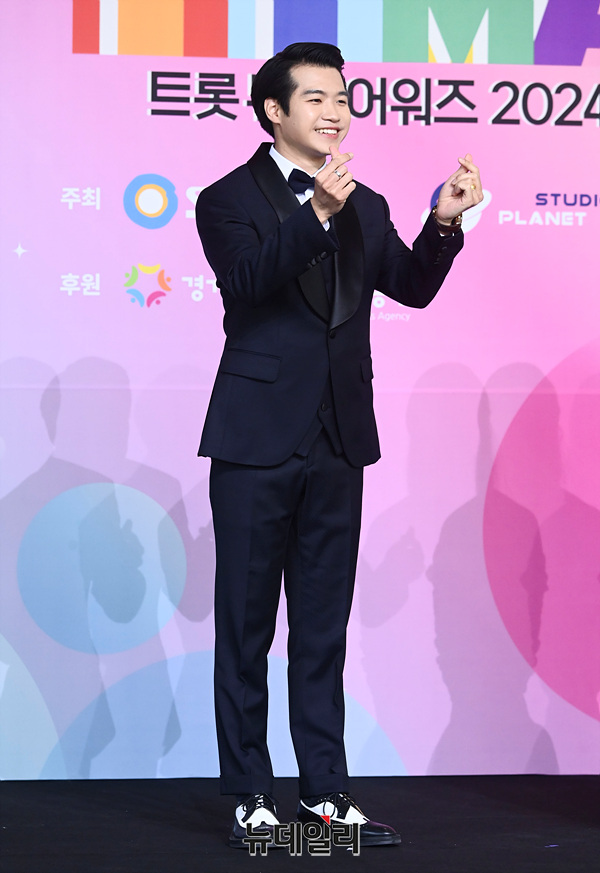 가수 조명섭이 12일 오후 서울 마포구 SBS 프리즘타워에서 열린 '트롯뮤직어워즈 2024' 레드카펫에서 포즈를 취하고 있다.