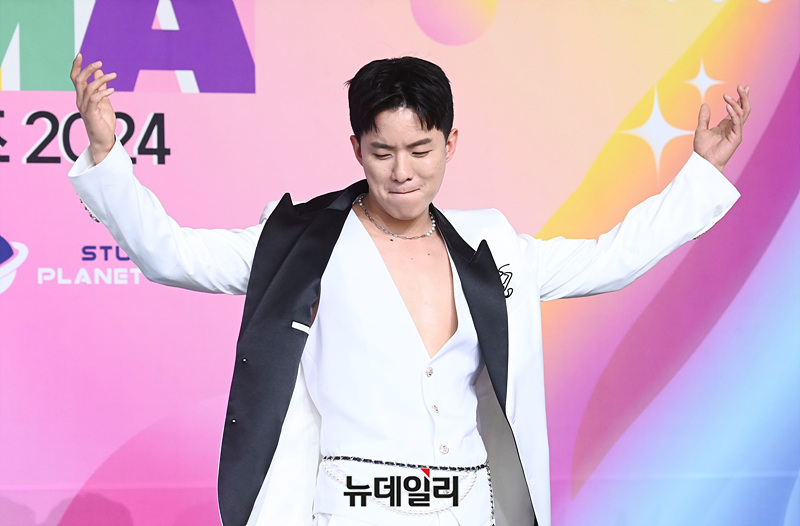 가수 나태주가 12일 오후 서울 마포구 SBS 프리즘타워에서 열린 '트롯뮤직어워즈 2024' 레드카펫에서 포즈를 취하고 있다.