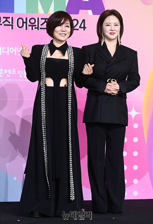 가수 한혜진이 12일 오후 서울 마포구 SBS 프리즘타워에서 열린 '트롯뮤직어워즈 2024' 레드카펫에서 포즈를 취하고 있다.