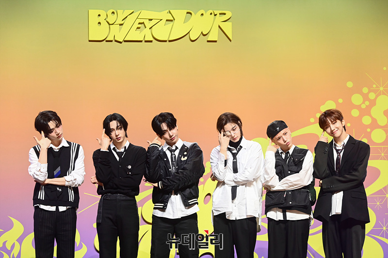 보이그룹 보이넥스트도어(BOYNEXTDOOR)가 15일 오후 서울 광진구 예스24라이브홀에서 열린 미니2집 '하우(HOW?)' 미디어 쇼케이스에서 포즈를 취하고 있다.이번 앨범은 타이틀곡 '얼스, 윈드 앤 파이어(Earth, Wind & Fire)'를 포함해 'OUR(오유알)' '암네시아(Amnesia)' '쏘 렛츠 고 씨 더 스타즈(So let's go see the stars)' '라이프 이즈 쿨(l i f e i s c o o l)' '디어. 마이 달링(Dear. My Daring)' 까지 여섯 곡을 담았다. 음원은 오후 6시 공개.
