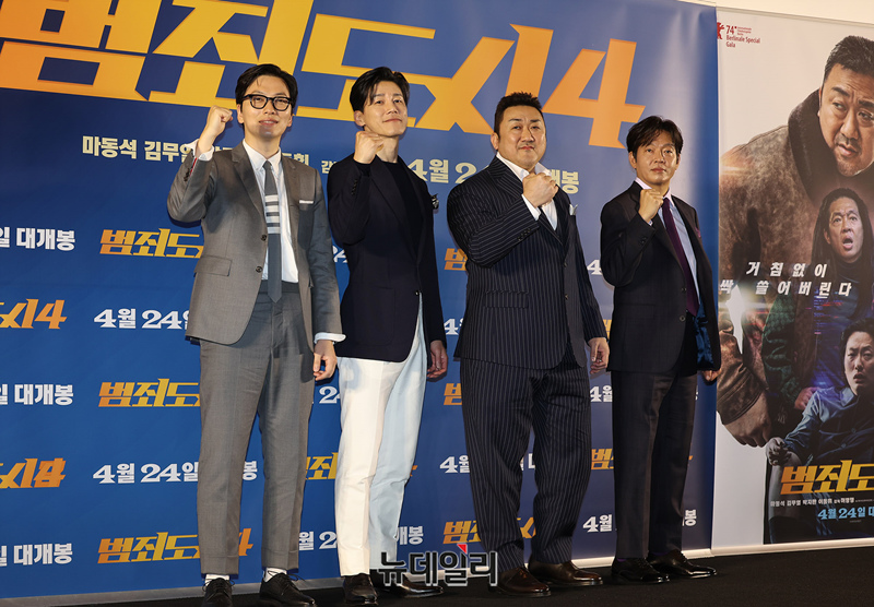 '범죄도시4'는 괴물 형사 마석도가 대규모 온라인 불법 도박 조직을 움직이는 특수부대 용병 출신의 빌런 백창기와 IT 업계 천재 CEO 장동철에 맞서 다시 돌아온 장이수, 광수대&사이버팀과 함께 펼치는 범죄 소탕 작전을 그린다. 24일 극장 개봉.