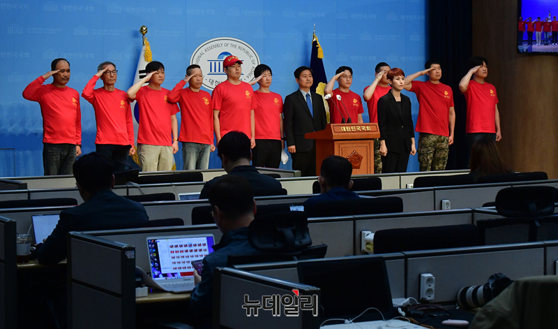 해병대예비역연대 법률자문 김규현 변호사가 17일 오전 국회 소통관에서 열린 제21대 국회 '채상병 특검법' 처리를 촉구 기자회견에서 발언을 하고 있다.