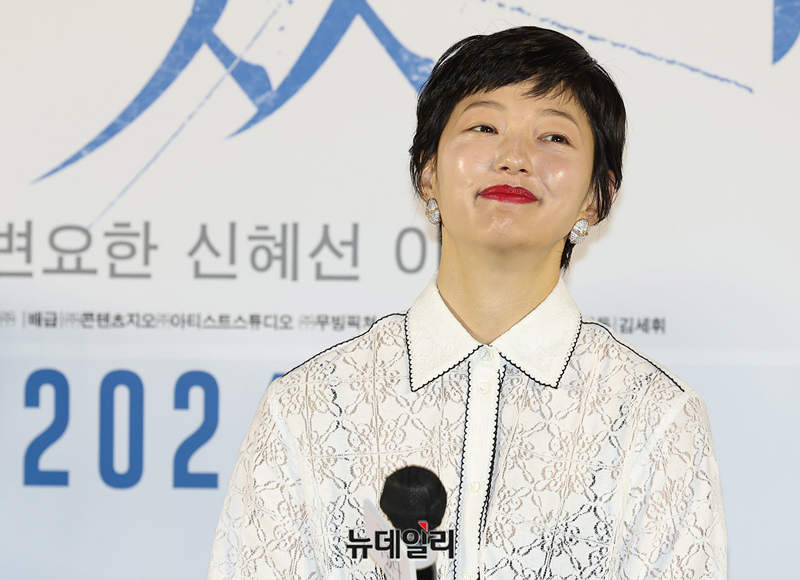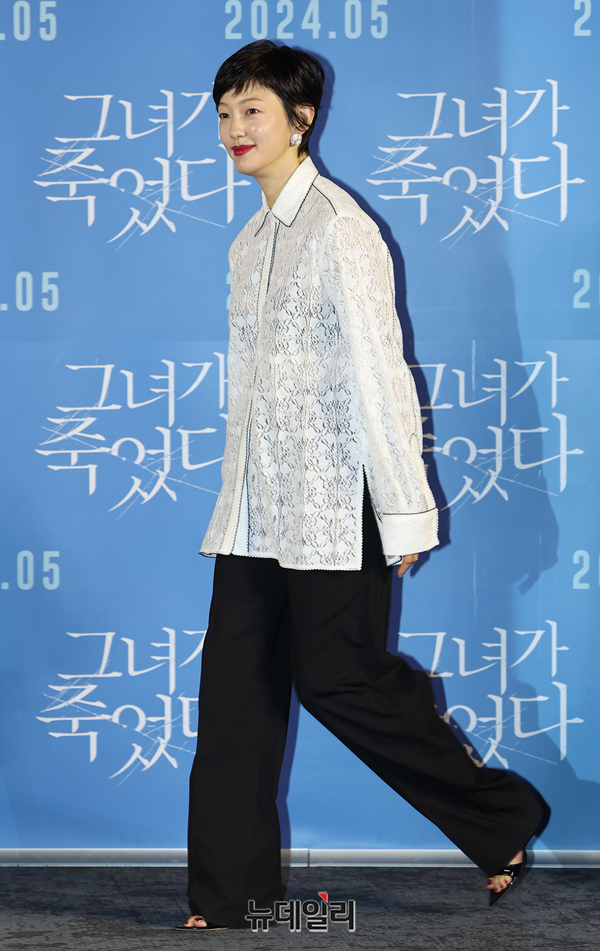 배우 이엘이 17일 오전 서울 성동구 메가박스 성수에서 열린 미스터리 추적 스릴러 영화 '그녀가 죽었다(감독 김세휘)' 제작보고회에서 인사말을 하고 있다.