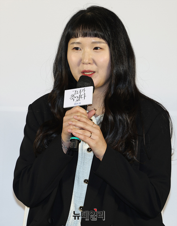 김세휘 감독이 17일 오전 서울 성동구 메가박스 성수에서 열린 미스터리 추적 스릴러 영화 '그녀가 죽었다(감독 김세휘)' 제작보고회에서 인사말을 하고 있다.
