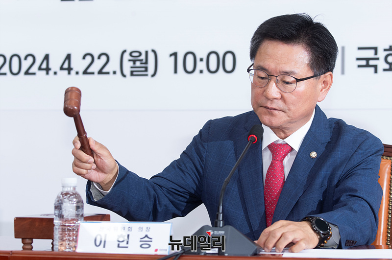 이헌승 국민의힘 전국위원회 의장이 22일 오전 국회에서 열린 제11차 전국위원회에서 개회선언을 하고 있다.