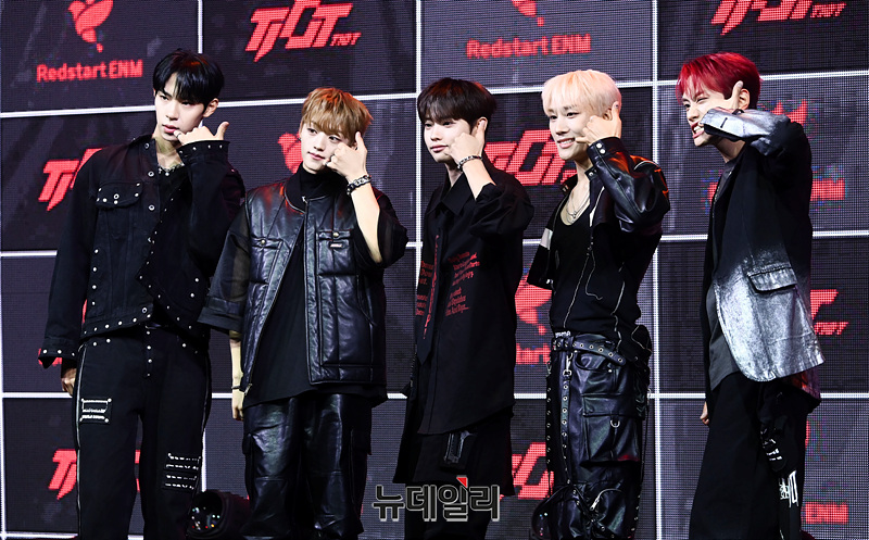 그룹 티아이오티(TIOT) 홍건희, 최우진, 신예찬, 김민성, 금준현이 22일 오후 서울 마포구 신한카드 SOL페이 스퀘어에서 열린 데뷔앨범 '킥-스타트(Kick-START)' 발매 기념 쇼케이스에서 포즈를 취하고 있다.앨범 '킥-스타트(Kick-START)'는 타이틀곡 '록 생(ROCK THANG)'을 포함해 '구스범스(Goosebumps)' '가나요(Moonrise)' '파라다이스(Paradise)' '아기상어'까지 다섯 곡을 담았다. 음원은 오후6시 공개.