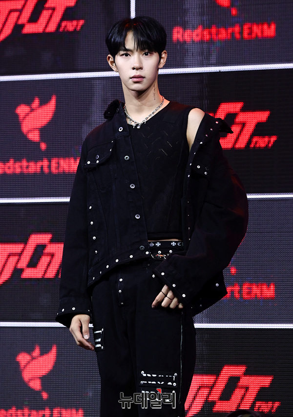 그룹 티아이오티(TIOT) 홍건희가 22일 오후 서울 마포구 신한카드 SOL페이 스퀘어에서 열린 데뷔앨범 '킥-스타트(Kick-START)' 발매 기념 쇼케이스에서 포즈를 취하고 있다.