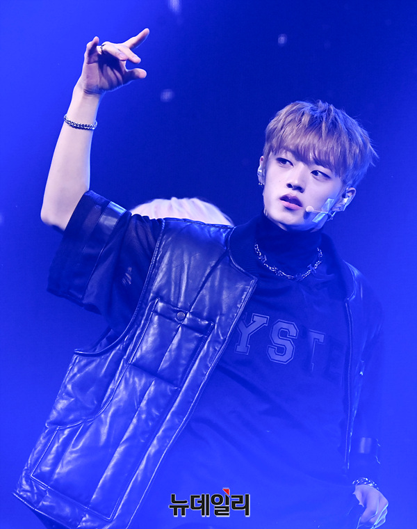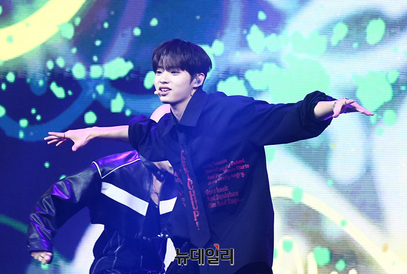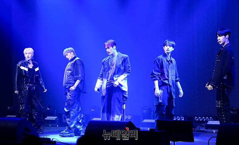 그룹 티아이오티(TIOT)가 22일 오후 서울 마포구 신한카드 SOL페이 스퀘어에서 열린 데뷔앨범 '킥-스타트(Kick-START)' 발매 기념 쇼케이스에서 무대를 선보이고 있다.