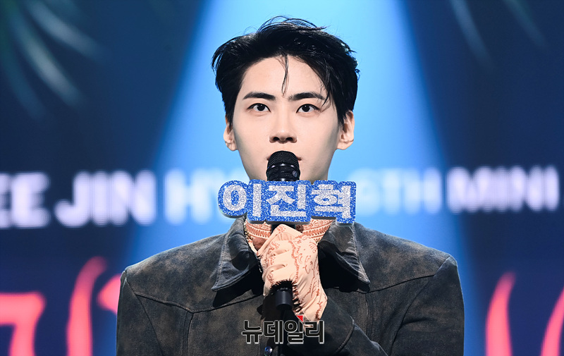 솔로가수 이진혁이 23일 오후 서울 강서구 SBS 등촌동 공개홀에서 열린 미니 6집 '뉴 퀘스트: 정글(NEW QUEST: JUNGLE)' 발매 기념 쇼케이스에서 복귀 소감을 밝히고 있다.