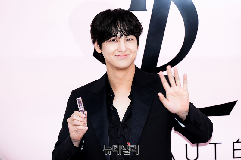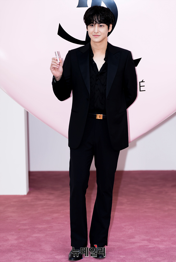 배우 김범이 24일 오후 서울 성동구 엠프티에서 열린 '입생로랑 뷰티 러브샤인 팩토리 팝업 이벤트' 포토월에서 포즈를 취하고 있다.