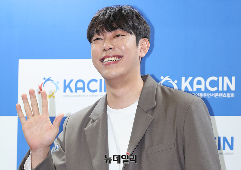 유튜버 한입좌가 25일 오후 서울 광진구 건국대학교 새천년관에서 열린 한국인플루언서콘텐츠협회(KACIN) 출범식에서 포토타임을 갖고 있다.