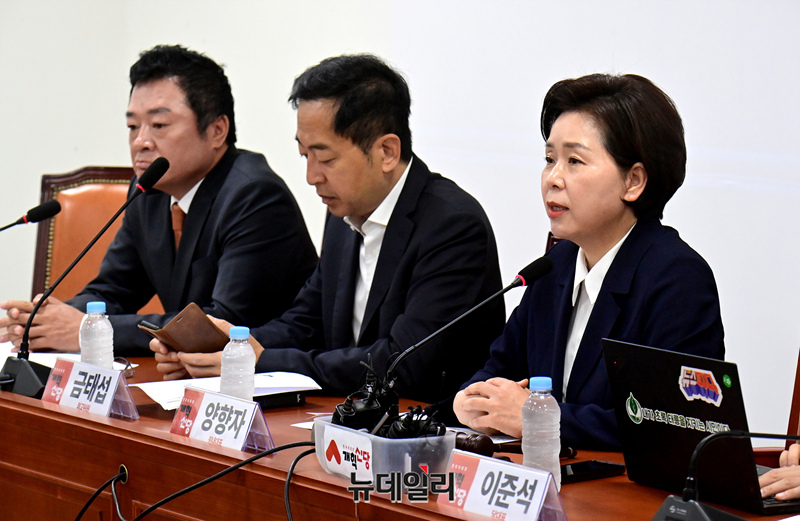 양향자 개혁신당 원내대표가 26일 오전 국회에서 열린 최고위원회의에서 참석해 모두발언을 하고 있다.