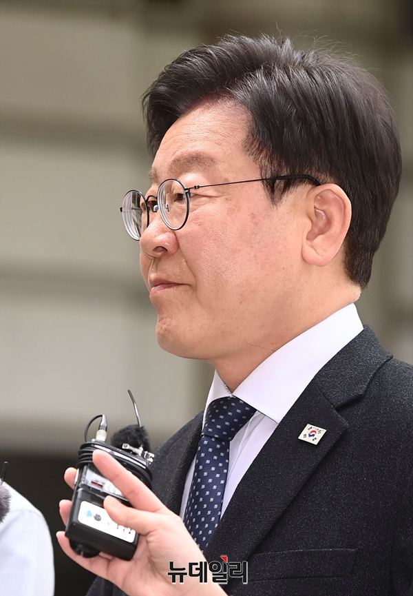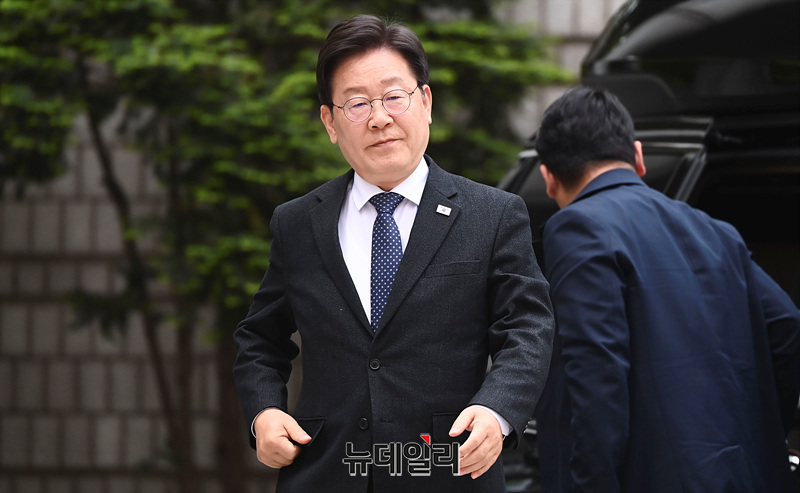 [포토] '대장동·성남FC 배임·뇌물' 공판 출석하는 이재명 민주당 대표