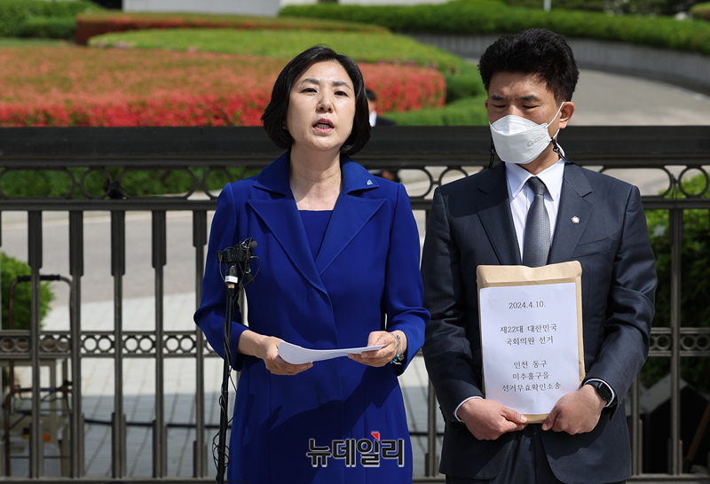 4·10 국회의원선거에서 인천 동·미추홀을에 출마해 낙선한 남영희 전 민주연구원 부원장이 29일 오전 서울 서초구 대법원에서 선거 무효소송을 제기하며 입장을 밝히고 있다.남 전 부원장은 "선관위 절차상 하자가 명백하며 선거법 178조3항 공표 절차를 완전히 어겼다"며 "선거 과정에서 개표 과정을 공표해야 하는 과정을 어겨 절차가 잘못돼 전체 선거 과정이 잘못됐다"는 입장이다.남 전 부원장은 이번 총선에서 윤상현 당선자에게 1,025표 차이로 낙선했다. 앞서 2020년 총선에서 당시 최소 득표차이인 171표 차이로 낙선한 바 있다.