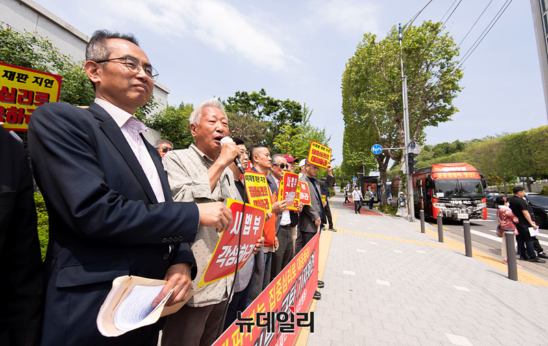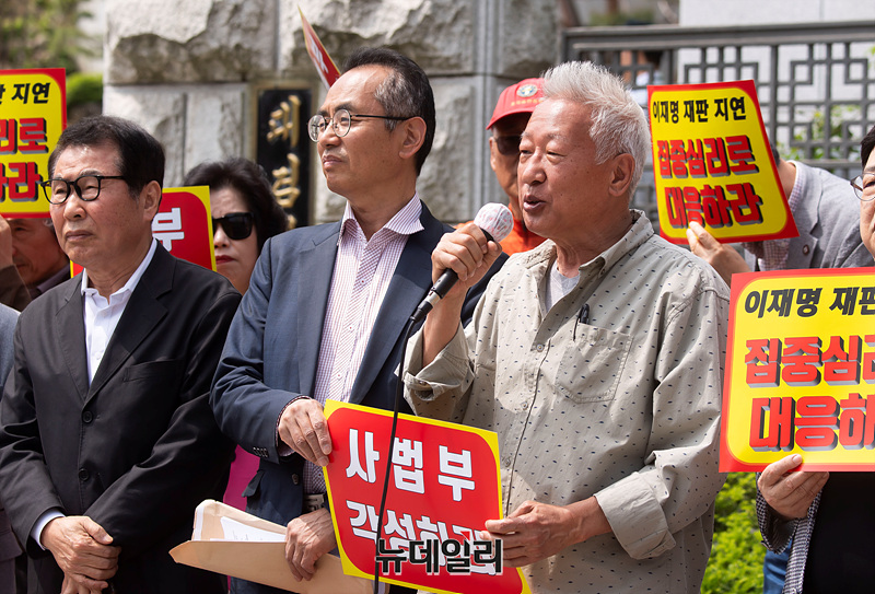 이들은 "사법부 각성하라" "이재명 재판 지연 집중심리로 대응하라" 등의 문구가 적힌 피켓을 들고 구호를 외쳤다. 이어진 드라이브스루 집회는 대검찰청에서 출발해 대법원, 중앙지법을 포함한 법조단지를 순회하는 차량행진을 진행했다.