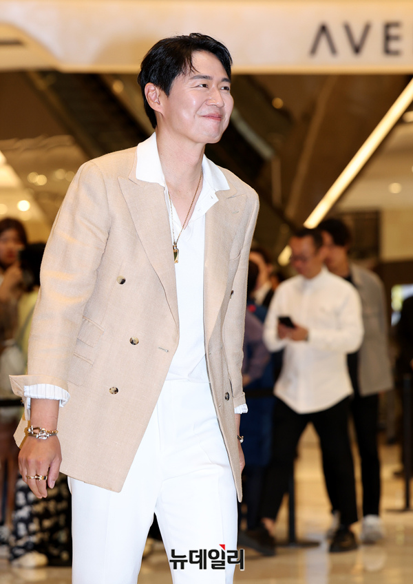 배우 연정훈이 2일 오전 서울 송파구 롯데월드몰 크라운에서 오픈한 프레드(FRED) 팝업스토어 '포스텐 크루즈' 오픈 행사에 참석해 포즈를 취하고 있다.
