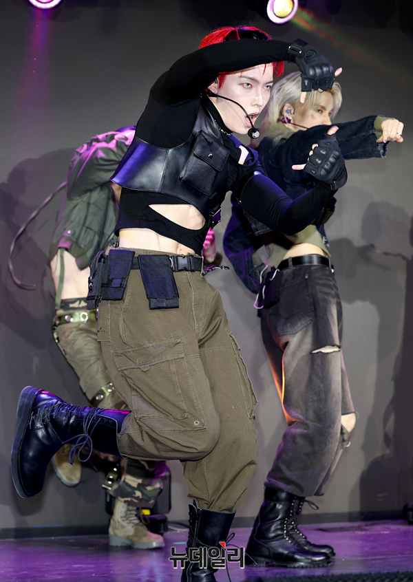 6인조로 컴백한 아이돌그룹 엘라스트가 2일 오후 서울 마포구 ㅎㄷ스테이지에서 열린 첫 정규앨범 ‘에버레스팅(EVERLASTING)’ 쇼케이스에서 타이틀곡 가솔린 무대를 선보이고 있다.