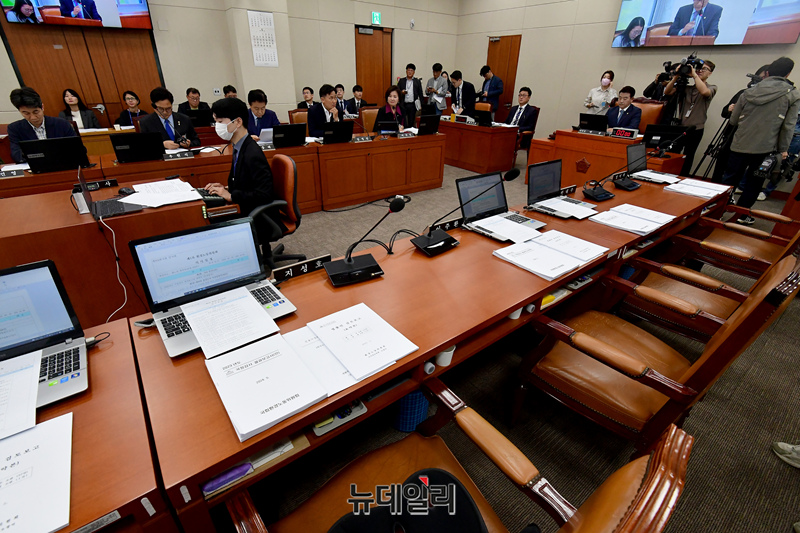이날 국민의힘 환노위 의원들은 민주당 주도로 채상병 특검을 처리한 것에 대한 항의 차원에서 회의를 보이콧 했다.