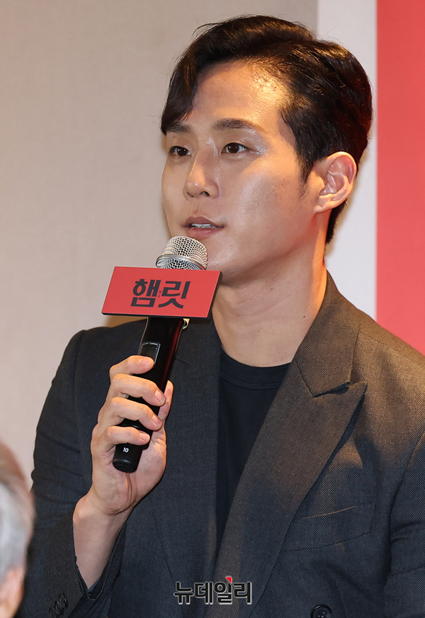 레어티즈 역을 맡은 배우 이충주가 7일 오후 서울 중구 더플라자호텔에서 열린 2024 연극 '햄릿' 제작보고회에서 인사말을 하고 있다.