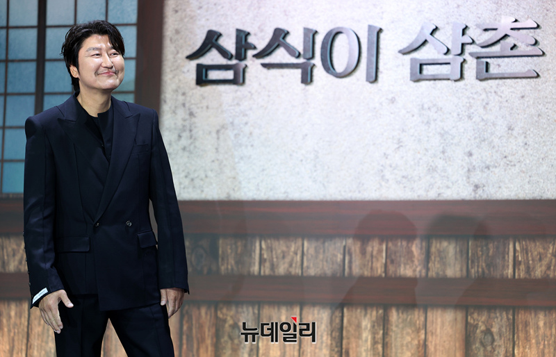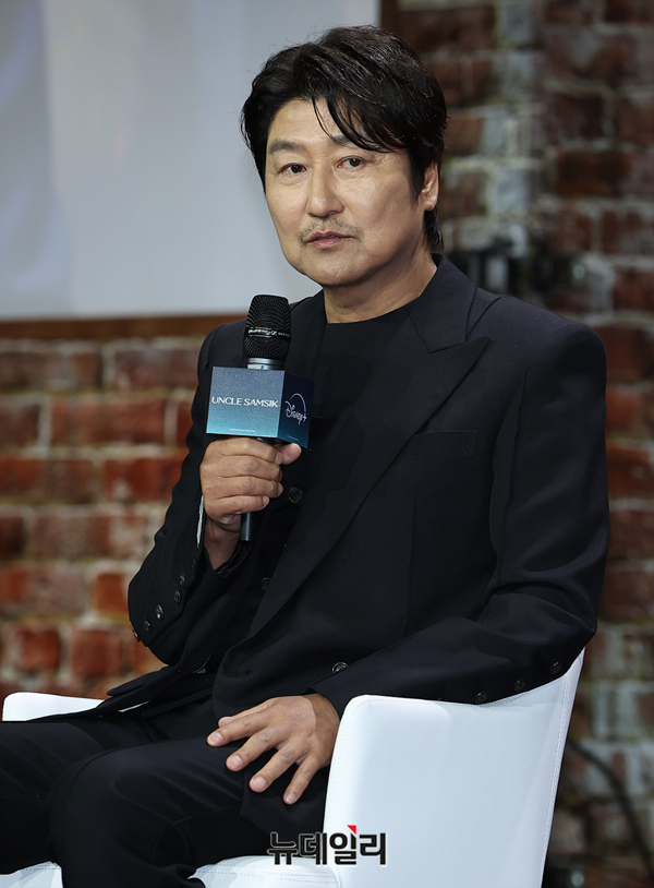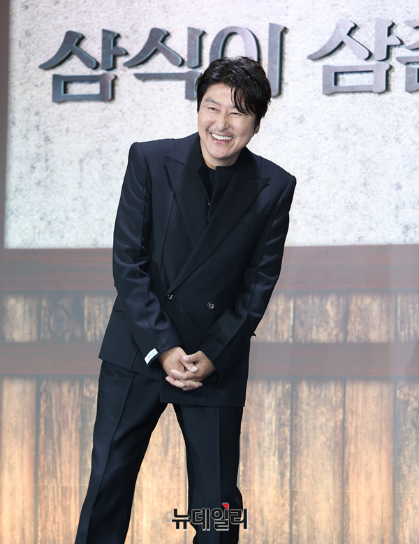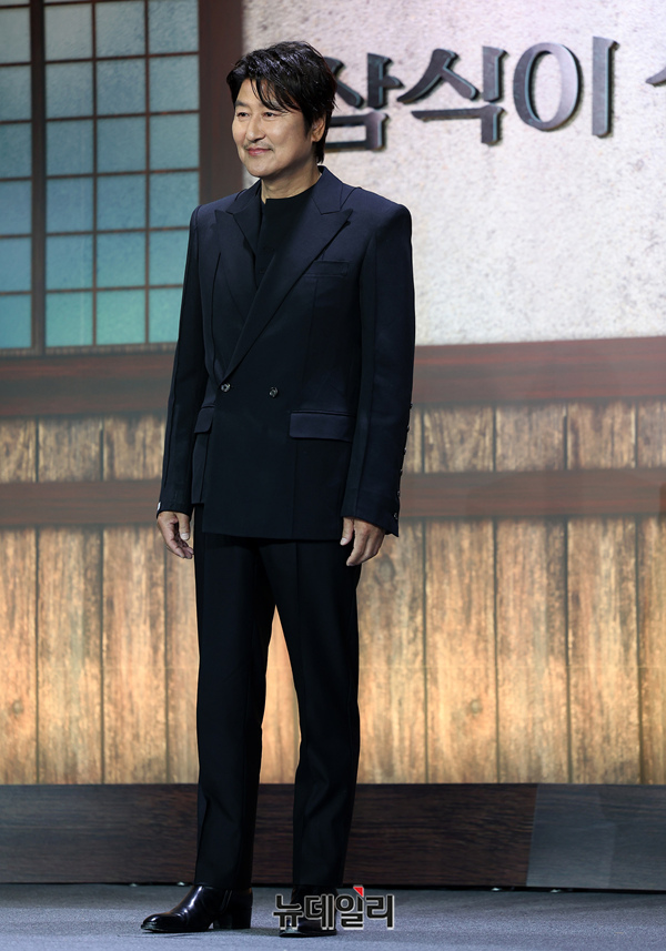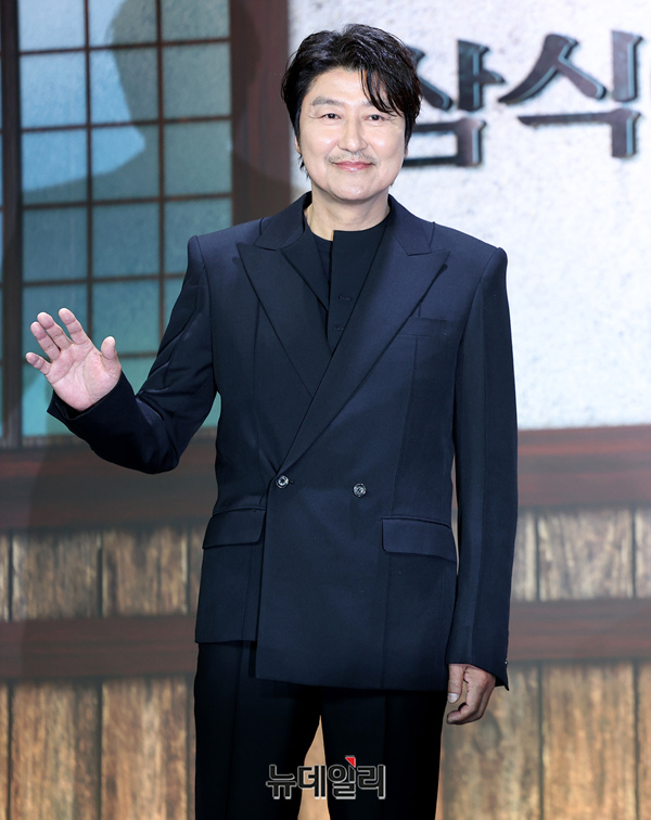 배우 송강호가 8일 오전 서울 강남구 그랜드 인터컨티넨탈 서울 파르나스에서 열린 디즈니+ 오리지널 시리즈 '삼식이 삼촌(감독 신연식)' 제작보고회에서 포토타임을 갖고 있다.'삼식이 삼촌'은 전쟁 중에도 하루 세끼를 반드시 먹인다는 삼식이 삼촌(송강호)과 모두가 잘 먹고 잘 사는 나라를 만들고자 했던 엘리트 청년 김산(변요한)이 만나 함께 꿈을 이루고자 하는 뜨거운 이야기를 담았다.배우 송강호, 변요한, 이규형, 진기주, 서현우, 주진모, 오승훈, 티파니영, 유재명 등이 출연한다. 5월 15일 첫 공개.