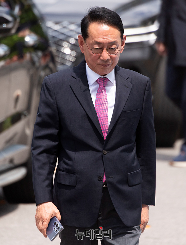 김도읍 법제사법위원회 위원장이 8일 오후 서울 종로구 헌법재판소에서 열린 이정섭 검사 탄핵 사건 변론기일에 출석하고 있다.
