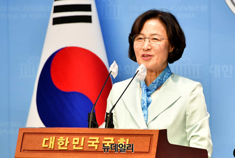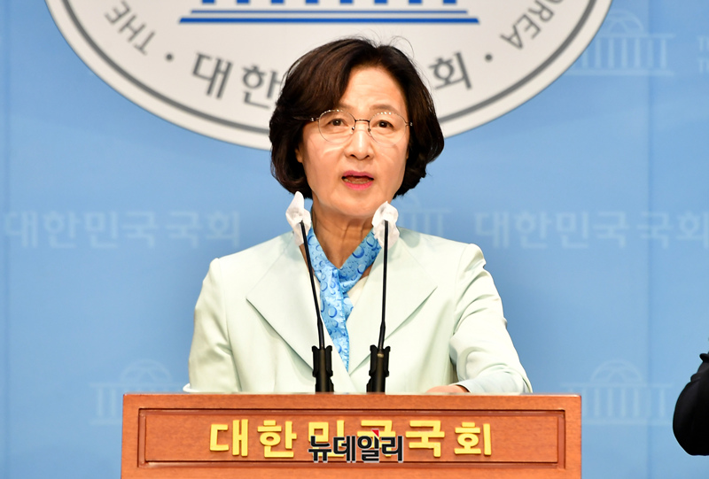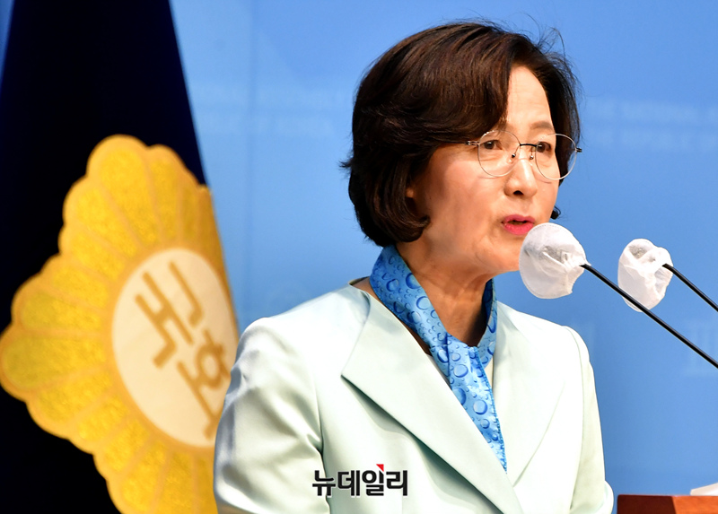 추미애 더불어민주당 당선인이 8일 오후 국회 소통관에서 국회의장 출마선언 기자회견을 하고 있다.