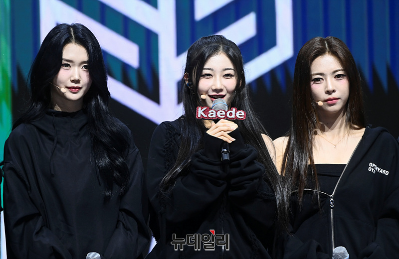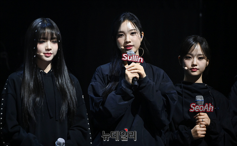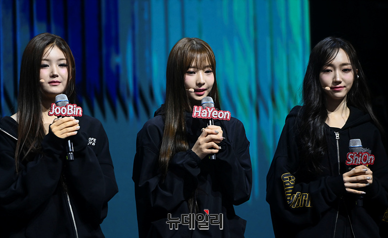 걸그룹 트리플에스(tripleS)가 8일 오후 서울 광진구 예스24라이브홀에서 열린 첫 번째 정규앨범 '어셈블24(ASSEMBLE24)' 발매 기념 쇼케이스에서 소감을 밝히고 있다.