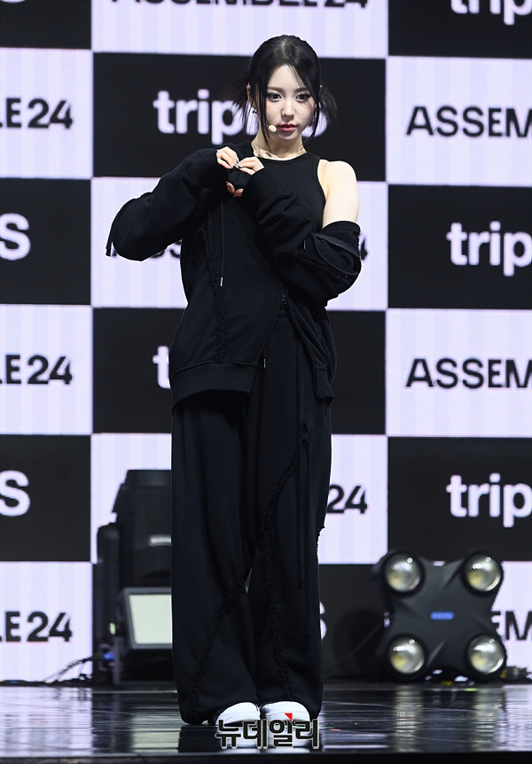 걸그룹 트리플에스(tripleS) 정혜린이 8일 오후 서울 광진구 예스24라이브홀에서 열린 첫 번째 정규앨범 '어셈블24(ASSEMBLE24)' 발매 기념 쇼케이스에서 포즈를 취하고 있다.