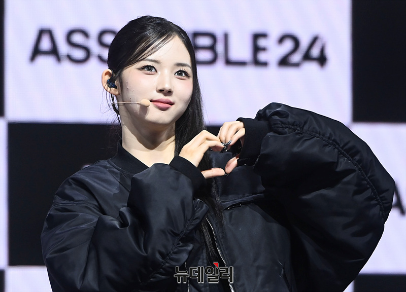 걸그룹 트리플에스(tripleS) 이지우가 8일 오후 서울 광진구 예스24라이브홀에서 열린 첫 번째 정규앨범 '어셈블24(ASSEMBLE24)' 발매 기념 쇼케이스에서 포즈를 취하고 있다.