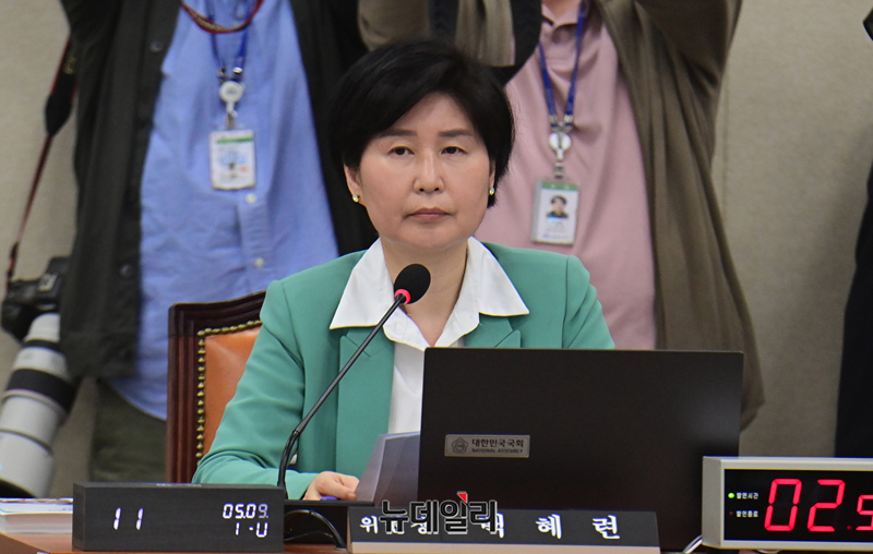 백혜련 국회 정무위원장이 9일 오전 국회에서 2023년도 국정감사 위증 증인 국민권익위원회 임윤주 전 기획조정실장 고발을 안건으로 열린 제1차 정무위원회에서 의사진행을 하고 있다.