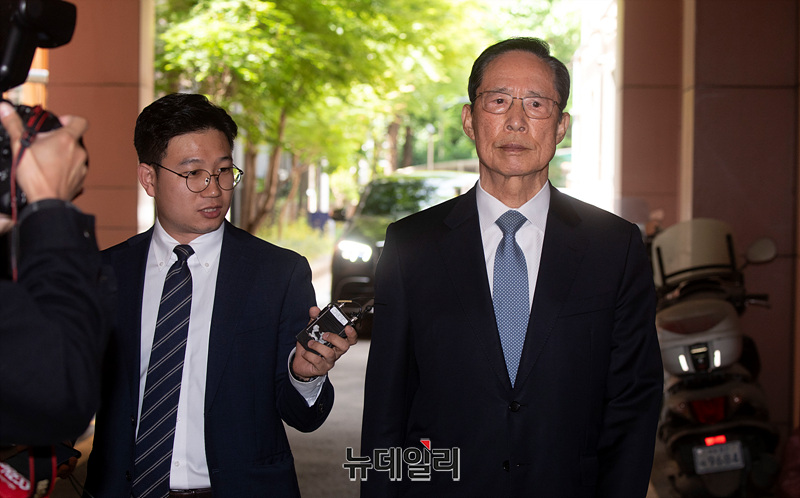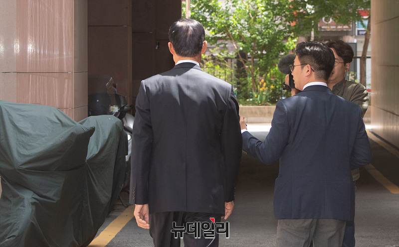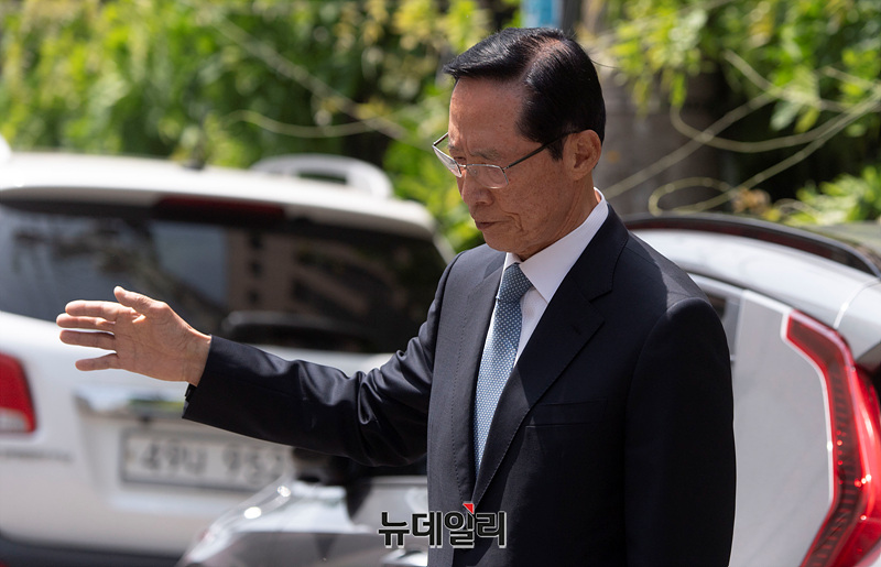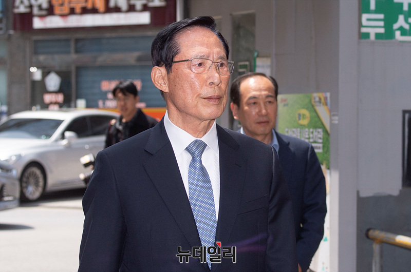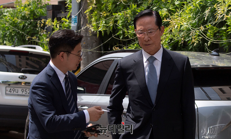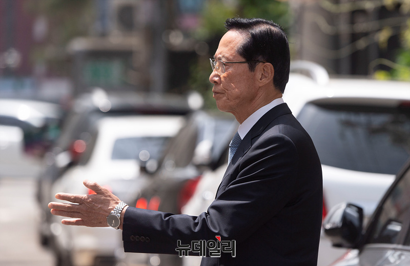 문재인 정부 시절 국방부 장관을 지낸 송영무 전 장관이 10일 오전 서울 마포구 서부지법에서 열린 '직권남용권리행사방해 혐의' 관련 공판기일 출석을 마치고 취재진을 피해 이동하고 있다.