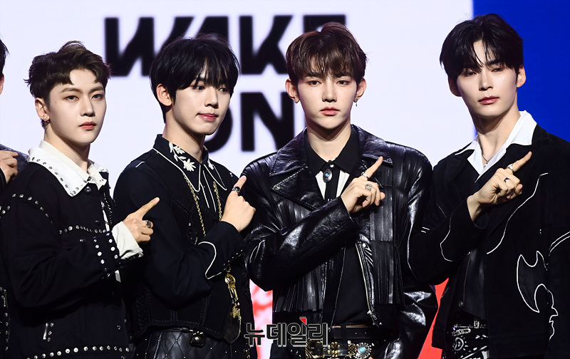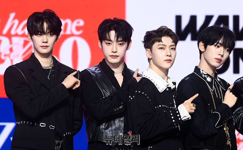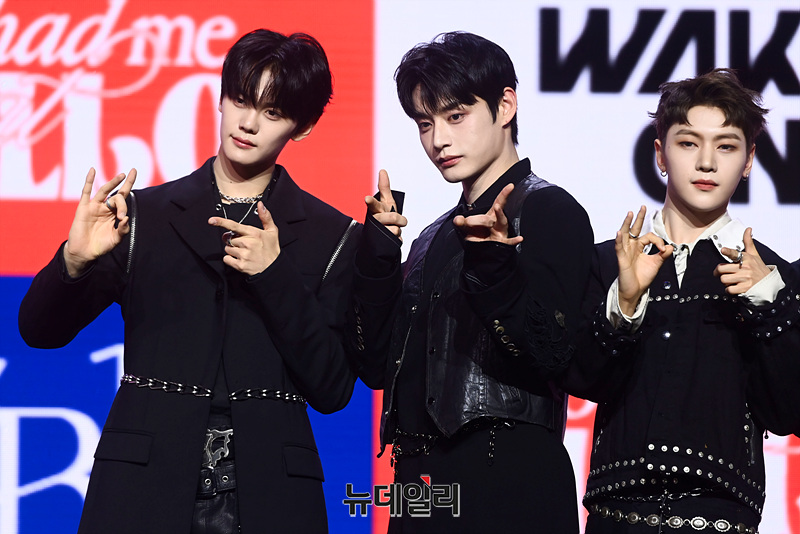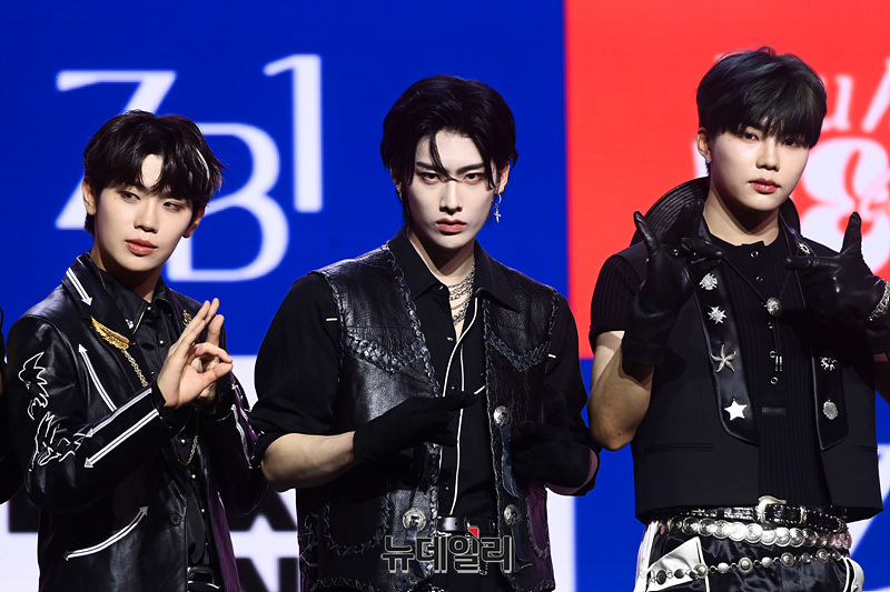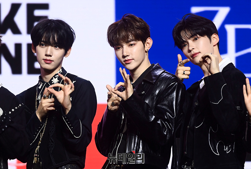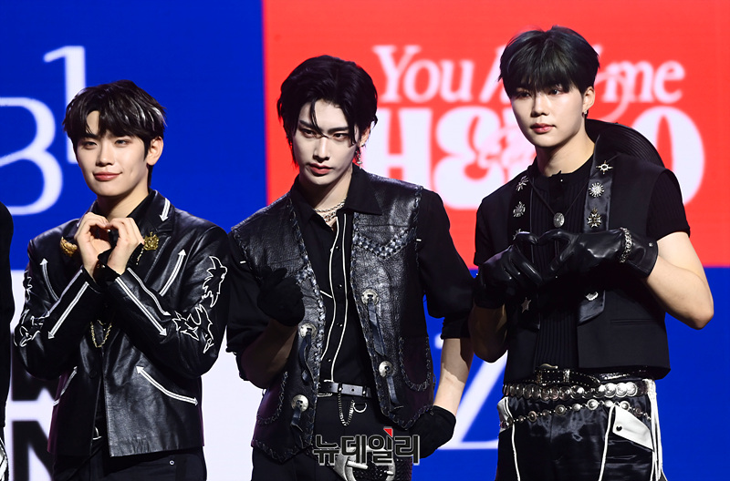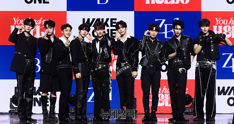 보이그룹 '제로베이스원(ZEROBASEONE)' 김규빈, 김지웅, 석매튜, 한유진, 장하오, 성한빈, 김태래, 리키, 박건욱이 13일 오후 서울 용산구 블루스퀘어 마스터카드홀에서 열린 미니 3집 '유 해드 미 앳 헬로우(You had me at HELLO)' 쇼케이스에서 포즈를 취하고 있다.이번 앨범은 타이틀곡 '필 더 팝(Feel the POP)'을 포함해 '솔라 파워(Solar POWER)' '디어 이클립스(Dear ECLIPSE)' '스웨트(SWEAT)' '선데이 라이드(Sunday RIDE)' '헬로우(HELLO)' '필 더 팝' 스페드 업 버전까지 총 7곡을 담았다. 음원은 오후 6시 공개.