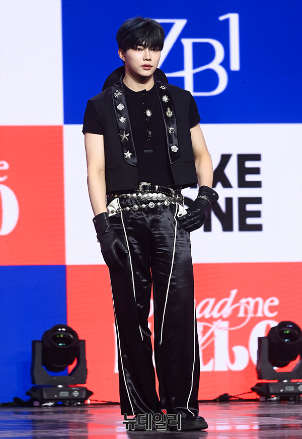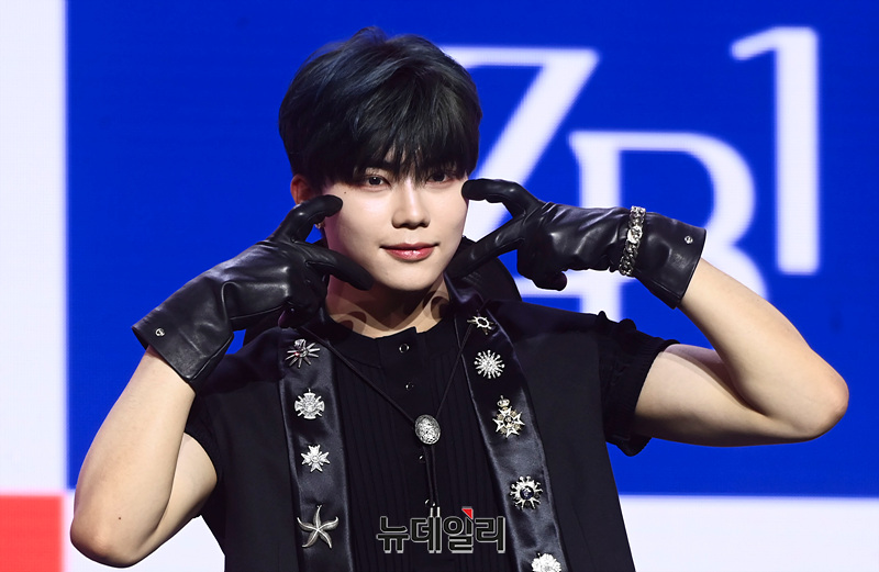 보이그룹 '제로베이스원(ZEROBASEONE)' 박건욱이 13일 오후 서울 용산구 블루스퀘어 마스터카드홀에서 열린 미니 3집 '유 해드 미 앳 헬로우(You had me at HELLO)' 쇼케이스에서 포즈를 취하고 있다.이번 앨범은 타이틀곡 '필 더 팝(Feel the POP)'을 포함해 '솔라 파워(Solar POWER)' '디어 이클립스(Dear ECLIPSE)' '스웨트(SWEAT)' '선데이 라이드(Sunday RIDE)' '헬로우(HELLO)' '필 더 팝' 스페드 업 버전까지 총 7곡을 담았다. 음원은 오후 6시 공개.