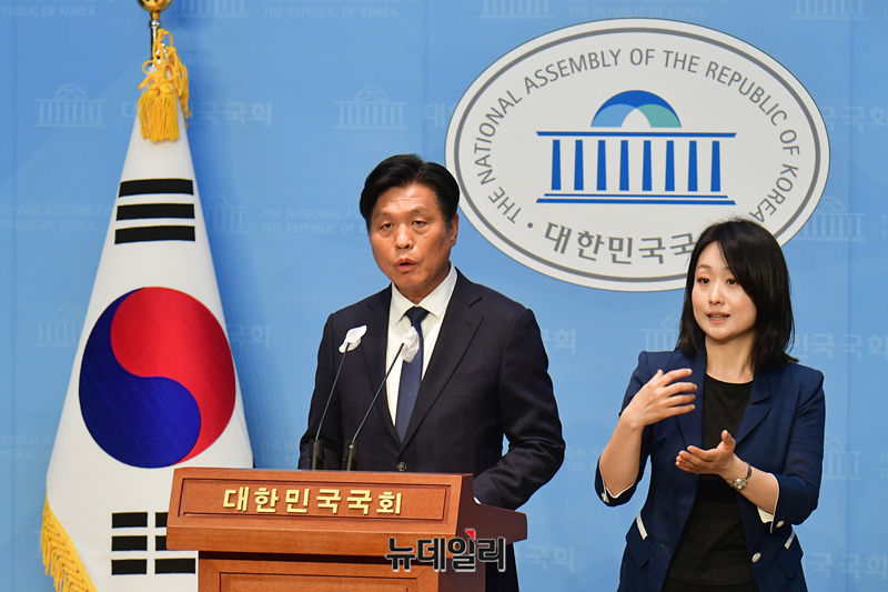 국회 과학기술정보방송통신위원회 조승래 더불어민주당 간사가 14일 오후 국회 소통관에서 라인야후 사태 등 현안 논의를 위한 과방위 개최에 협조해 줄 것을 국민의힘에 요구하고 있다.