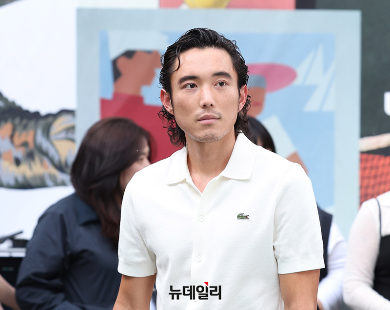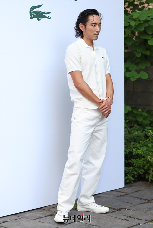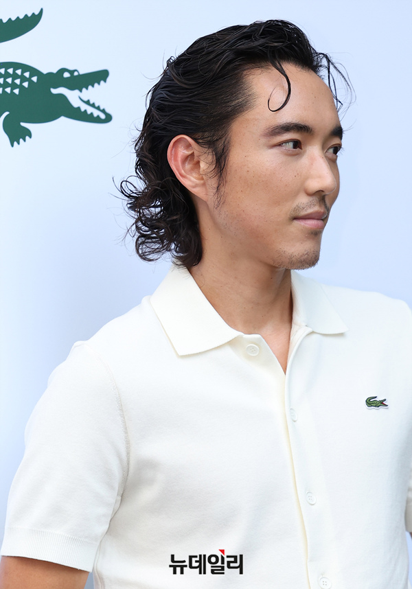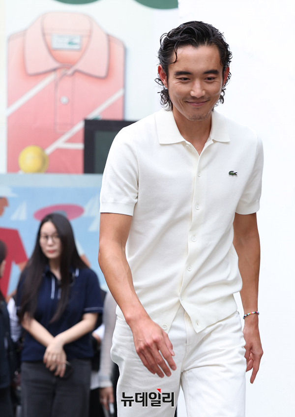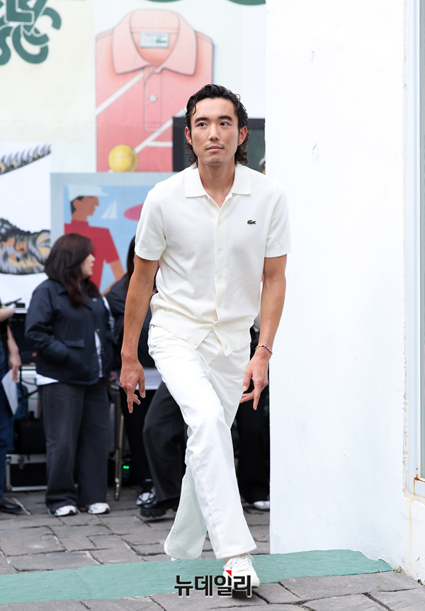 저스틴 민이 14일 오후 서울 성동구 성수동에서 열린 라코스테 폴로 컬렉션 해리티지 팝업 이벤트에 입장하고 있다.