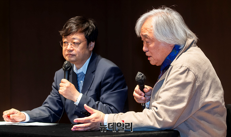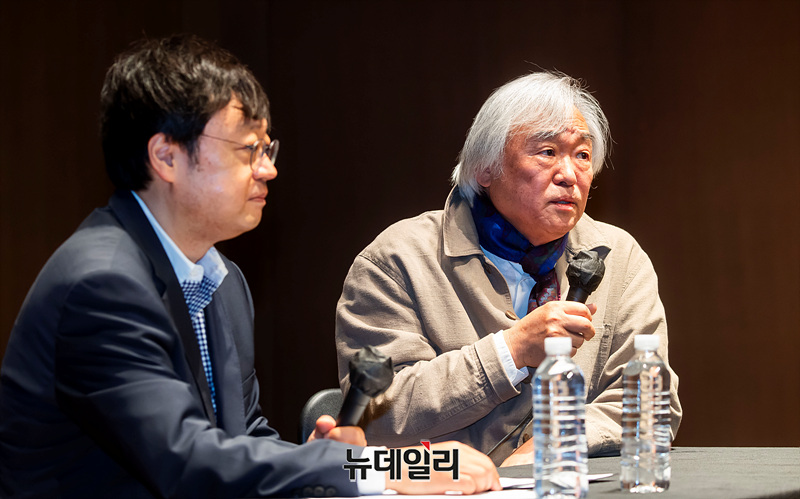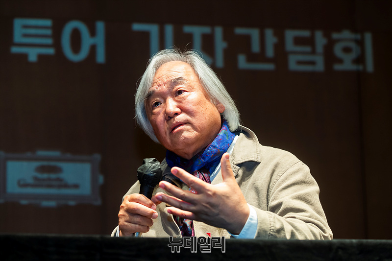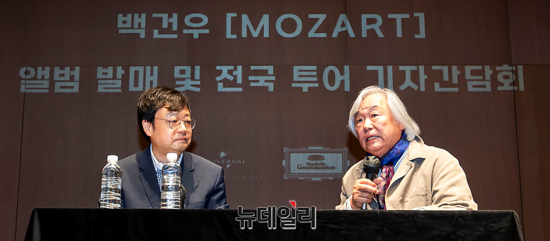 피아니스트 백건우가 16일 오전 서울 강남구 거암아트홀에서 열린 '백건우 모차르트 앨범 발매 및 전국 투어 기자간담회'에서 취재진의 질문에 답하고 있다.백건우는 68년 경력 최초로 '프로젝트 모차르트 3부작'의 첫 번째 앨범 [모차르트: 피아노 작품 1]을 발매한다. '피아노 소나타 16번'을 포함해 '론도' '아다지오' '지그' 등을 수록했다.5월 18일 부천아트센터 공연을 시작으로 6월 21일까지 모차르트 앨범 발매 기념 전국 투어를 선보일 예정이다.