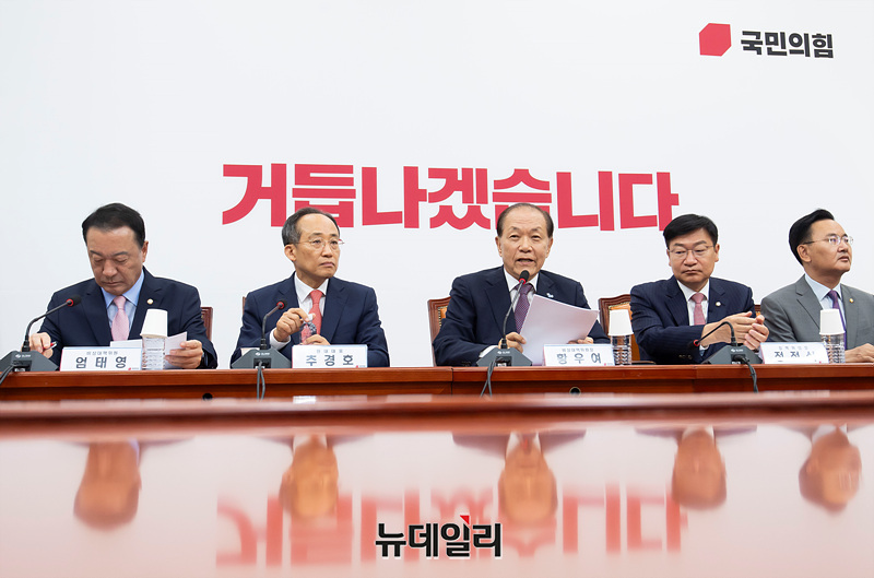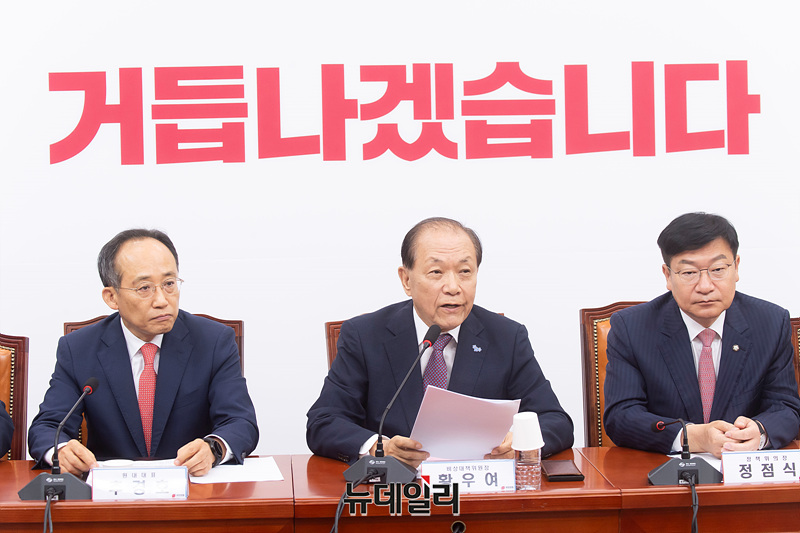 황우여 국민의힘 비상대책위원장이 20일 오전 국회에서 열린 비상대책위원회의에서 모두발언을 하고 있다.