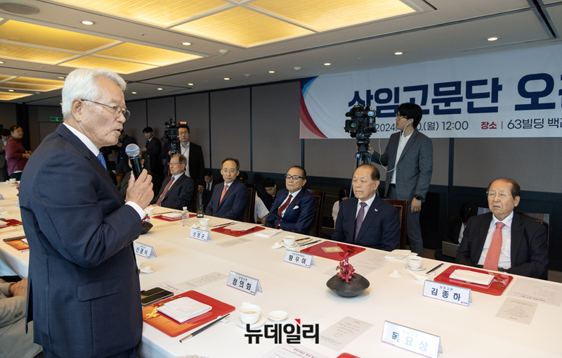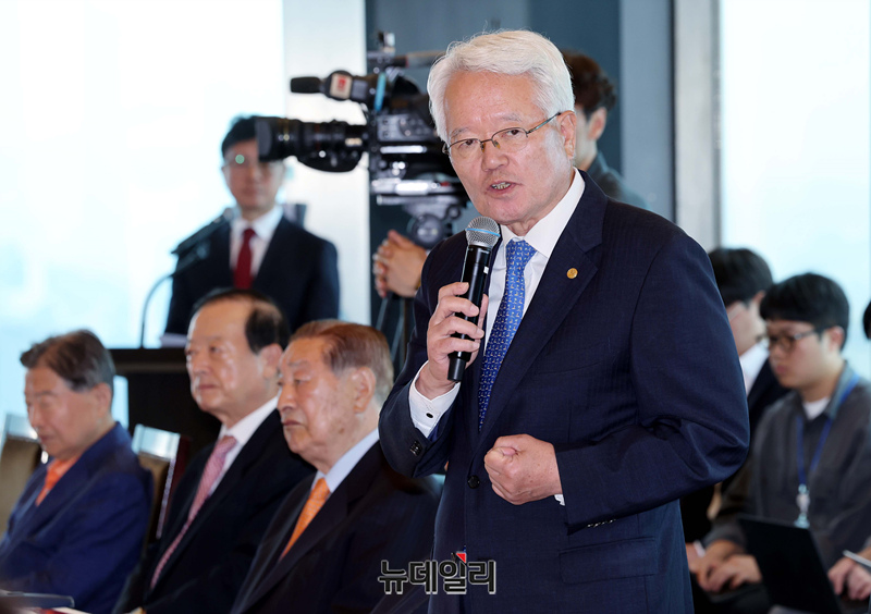 정의화 국민의힘 상임고문단 회장이 20일 서울 여의도의 한 식당에서 열린 상임고문단 오찬 간담회에서 발언하고 있다.