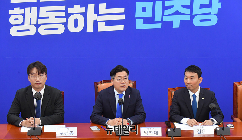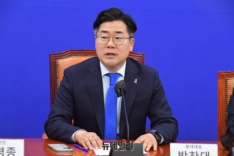 박찬대 더불어민주당 원내대표가 21일 오전 국회에서 열린 검찰개혁TF 1차 회의에서 모두발언을 하고 있다.