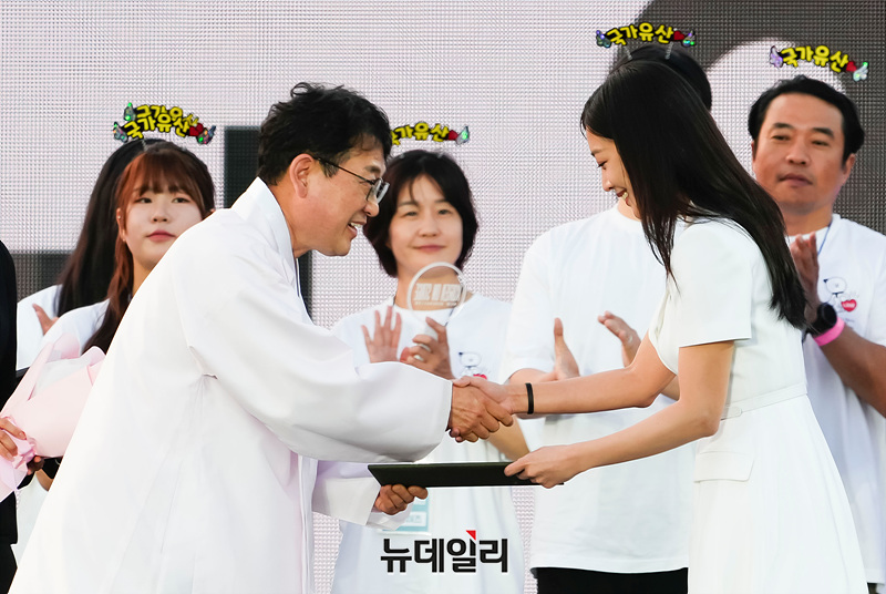 '국가유산 방문 캠페인' 홍보대사 조보아와 최응천 국가유산청장이 21일 오후 서울 종로구 경복궁에서 열린 위촉식에서 포즈를 취하고 있다.국가유산 방문 캠페인은 한국 국가유산을 세계인에게 소개하는 사업이다. 2024년 5월 '국가유산기본법' 시행에 따라 문화재청이 '국가유산청'으로 새롭게 출발한다.국가유산청은 무형유산국, 문화유산국, 자연유산국으로 재편되고 세계유산과 국외유산을 총괄하는 유산정책국도 신설된다. 한국문화재재단은 5월 17일 ‘국가유산진흥원’으로 명칭을 변경해 국가유산 활용 전문기관으로 재도약할 예정이다