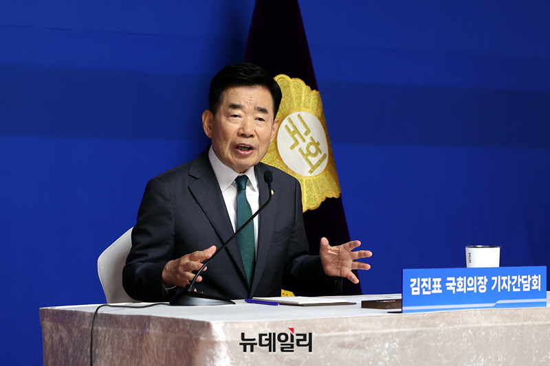 [포토] 퇴임 기자간담회 갖는 김진표 국회의장