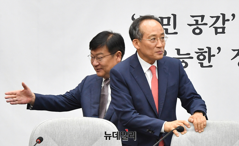 이날 추 원내대표는 영수회담을 제안한 이재명 대표를 향해 "여야 협의도 안된 사안을 갖고 민주당 안을 정부 안으로 거짓말까지 하면서 국민을 위하는 척, 개혁을 하는 척하는 위선을 멈춰주길 바란다"고 발언 했다.