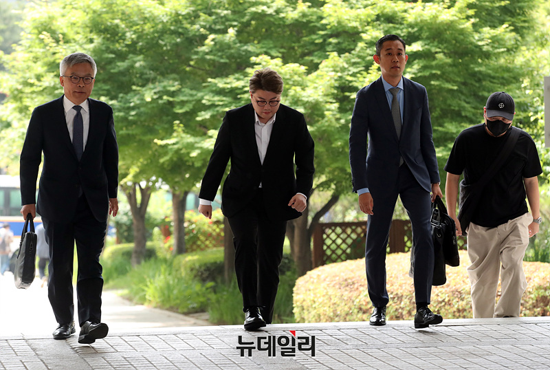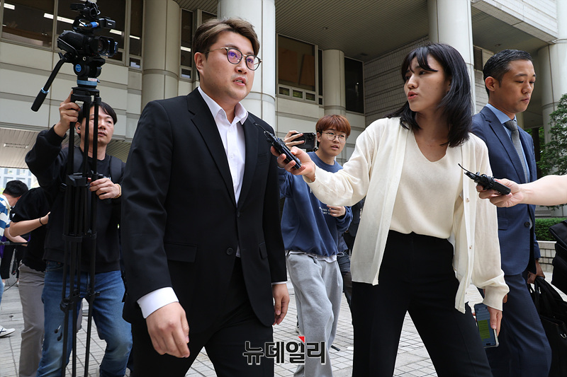 음주운전 뺑소니 혐의를 받는 가수 김호중이 24일 오전 서울 서초구 중앙지법에서 열린 구속 전 피의자 심문(영장심사)에 출석하고 있다.