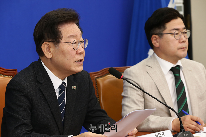 이재명 더불어민주당 대표가 24일 국회에서 열린 최고위원회의에 참석해 모두발언을 하고 있다.