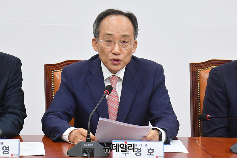 추경호 국민의힘 원내대표 27일 오전 국회에서 열린 비상대책위원회의에서 모두발언을 하고 있다.