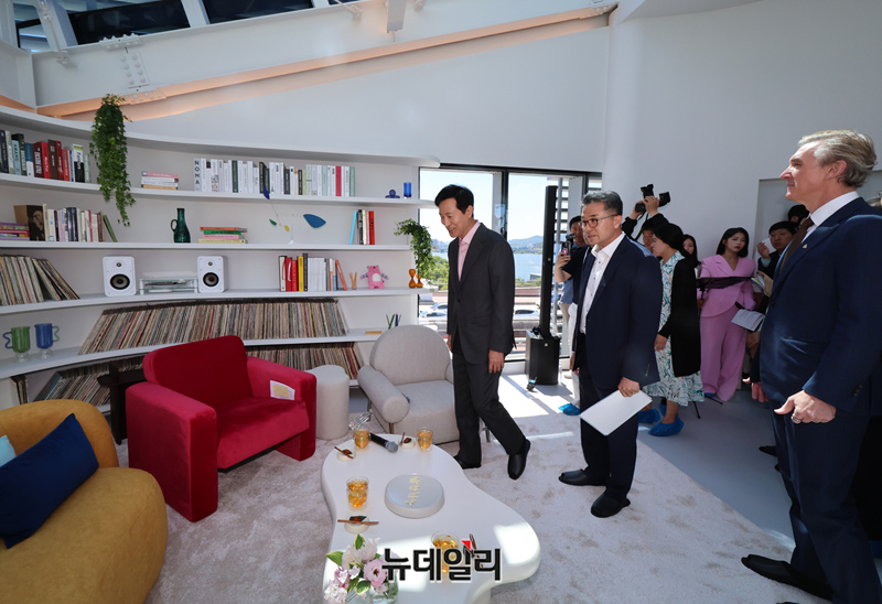 [포토] '스카이 스위트' 둘러보는 오세훈-에어비앤비 CBO