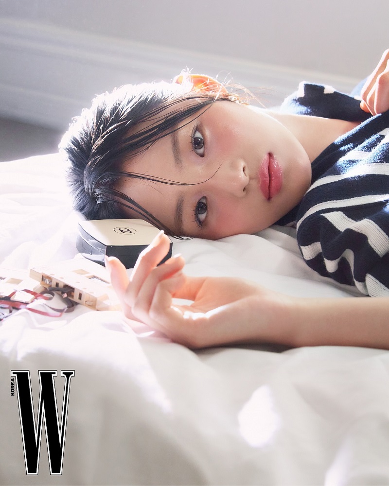 또한 민지의 파우치 필수템으로도 잘 알려진 'N°1 DE CHANEL 레드 까멜리아 립 앤 치크 밤'으로 싱그러운 혈색을 표현하고, '루쥬 코코 밤'을 활용해 맑고 생기로운 입술을 완성했다.