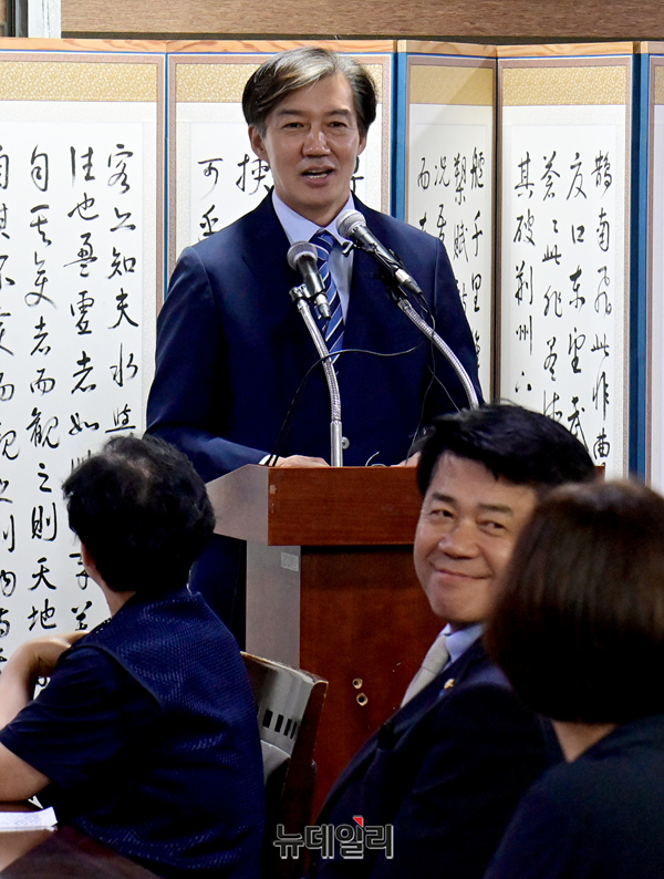 [포토] 청소노동자 오찬 간담회서 인사말 하는 조국 대표